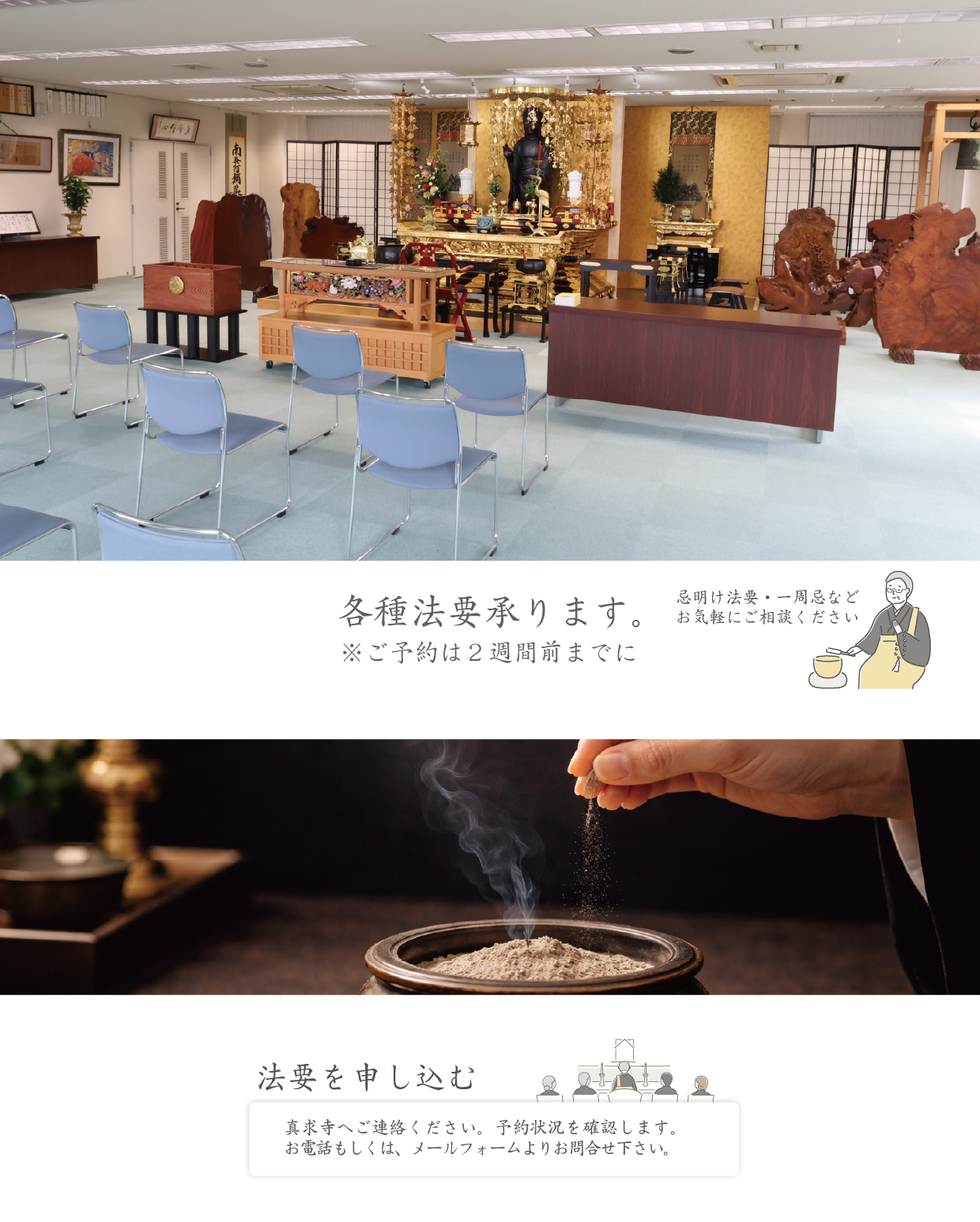 お名前 (必須) メールアドレス(必須) お問合せ内容(必須)複数選択可 納骨堂相談法要相談葬儀相談その他 電話番号 (必須) 郵便番号 (必須) 住所 (マンション・アパート名 必須) メッセージ本文(契約・見学・法要予約の場合は、ご希望の日時を入力ください。) (必須)